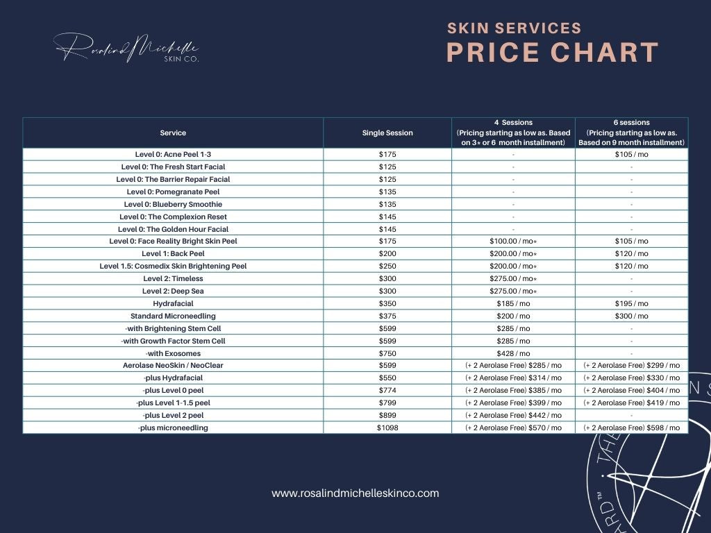 At Rosalind Michelle Skin Co, we take special care to understand your needs and concerns. We want to understand your skin history and your skin goals.